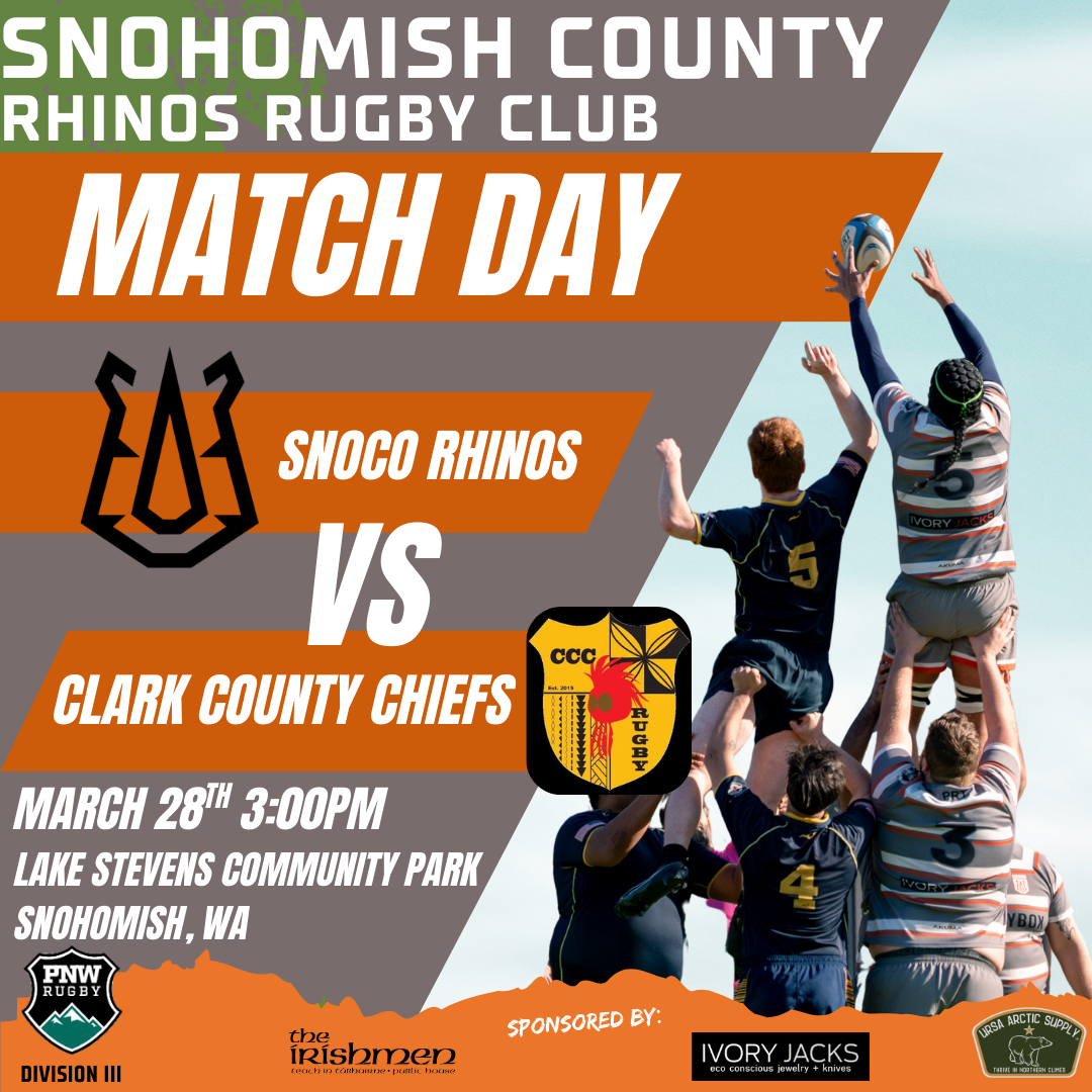 Rhinos Match Day Saturday, March 28, 2026 3:00 PM 6:00 PM Lake Stevens Community Fields 1601 North Machias Road Lake Stevens, WA, 98258 United States (map) Google Calendar ICS
